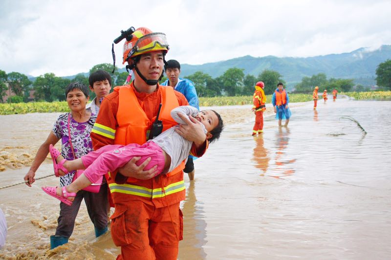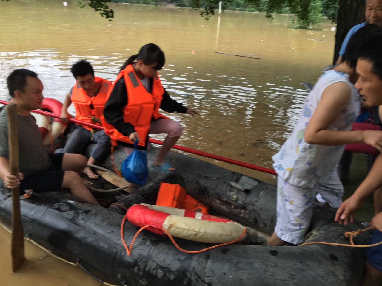 4时左右,村民陆续被救出,但村子里还有一位手臂骨折打着石膏、昨天刚刚出院叫阙荣辉的村民还在村里。得到消息后,阙国恒不顾连日劳累,冒着生命危险带着县消防大队队员涉水100米用简易皮划艇把她转运了出来,用实际行动维护了群众的生命财产安全。