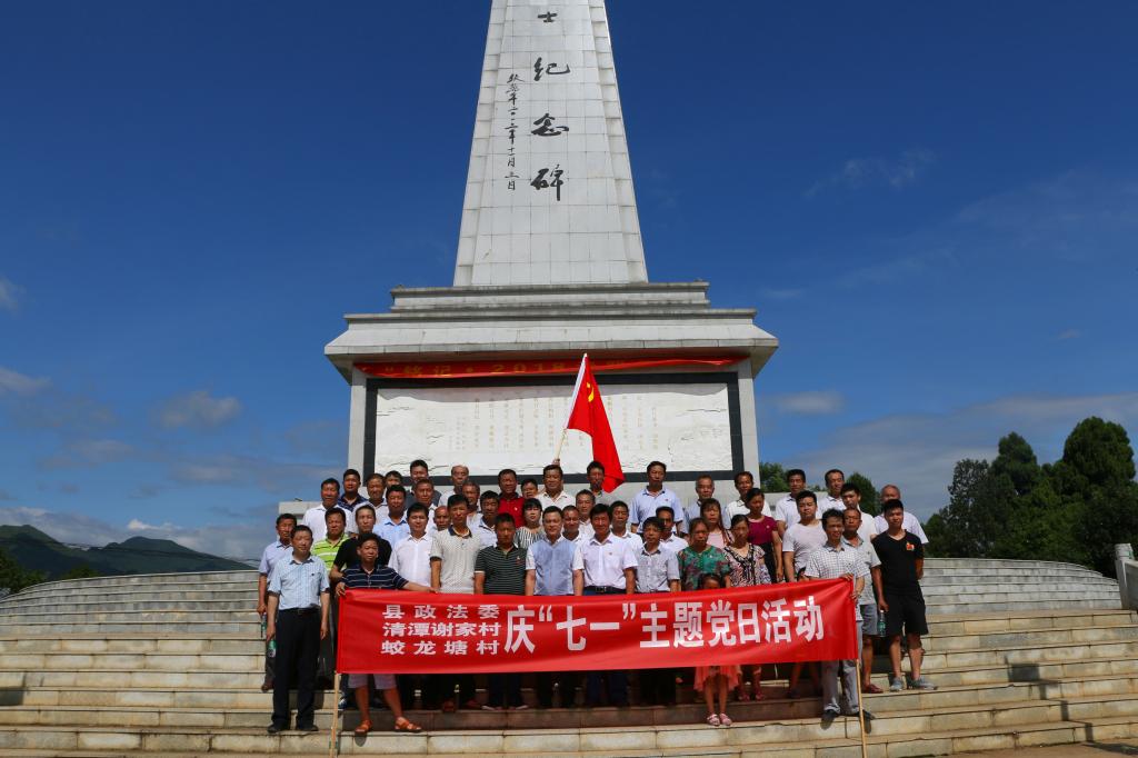 6月27日上午,县委常委、政法委书记曾海波和县委政法委机关、清潭谢家、蛟龙塘村50余名党员一道,在36566666是哪个公司的电话_365bet是什么_365bet即时比分县烈士陵园高唱国歌,听县史志办专家讲述革命先烈的英勇事迹,在鲜红的党旗下举起右手,庄严宣誓,重温入党誓词。清潭谢家、蛟龙塘村支部书记代表发表了感言,感谢36566666是哪个公司的电话_365bet是什么_365bet即时比分县委政法委带领他们脱贫致富。