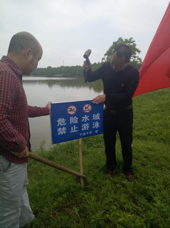 防溺水专项巡查。全体党员教师们开展防溺水专项巡查,对辖区内的河塘对辖区内的河塘、水渠进行一次安全隐患大排查,将有隐患的池塘、水渠记录起来,并上报镇政府重点关注,对无警示标志的全部插上警示牌。